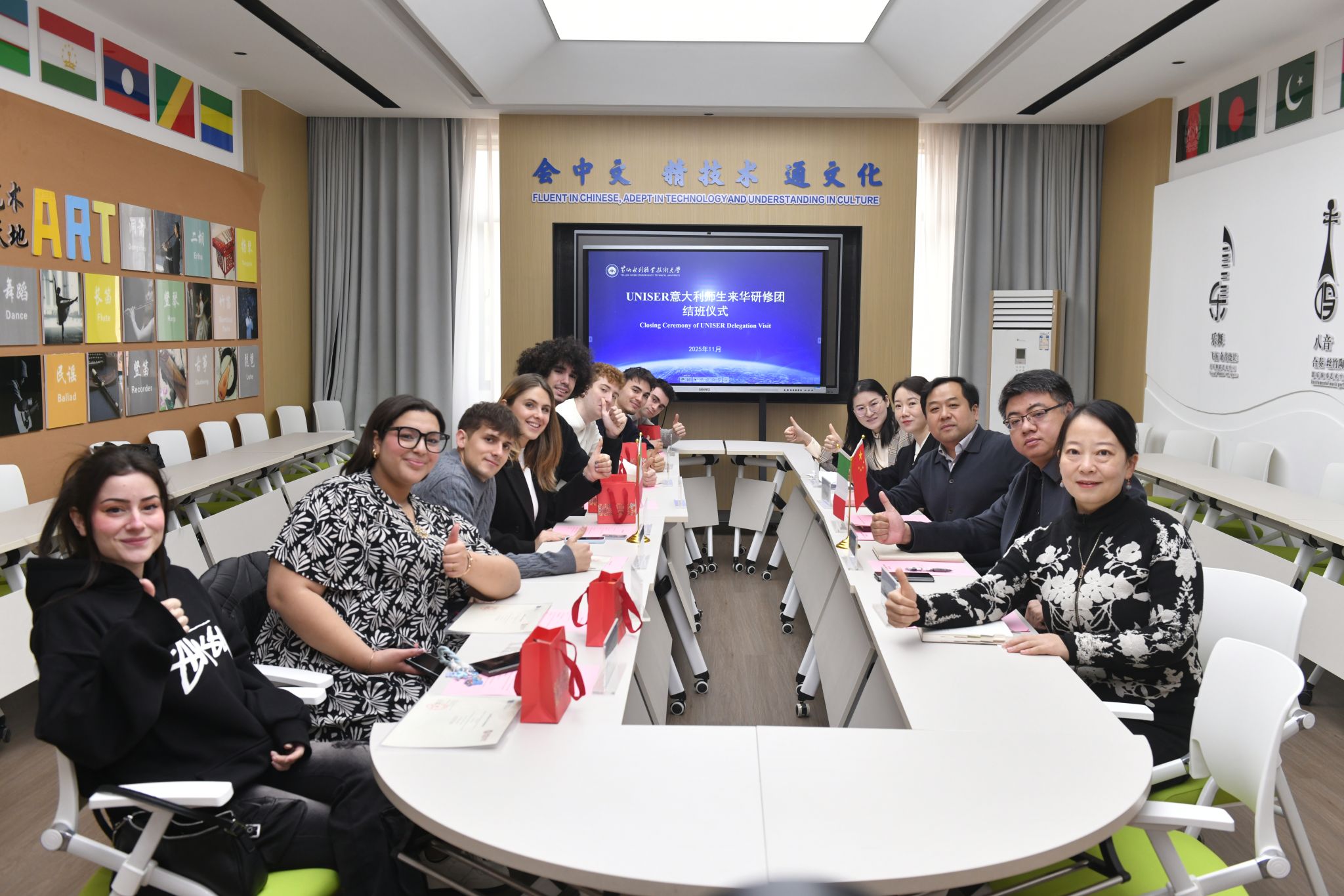 11月13日下午,结班仪式在7号教学楼7122会议室举行。仪式上,对外联络与合作处处长姬尧回顾了为期十天的研修历程,希望研修团成员返回意大利后,分享在中国的所见所感,当好两国友谊的文化使者。意大利团组领队老师维多利亚・莫罗西女士对学校的精心安排表示感谢,期待未来能够在人才培养等领域开展更深入的合作。随后,国际教育学院院长卫宗超为研修团成员颁发培训证书。意大利师生纷纷表示,此次研修让他们直观感受到中国职业教育的鲜明特色,深入了解了中国产业发展现状与技术创新成果,更近距离体验了中华传统文化的深厚底蕴。