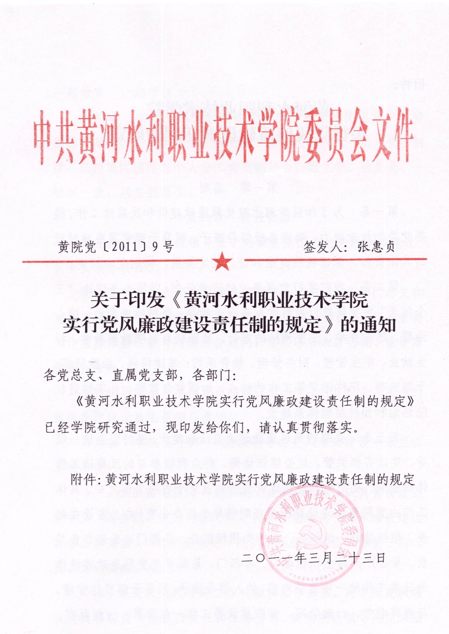 第一条 为了加强黄河水院党风廉政建设和反腐败工作,提高党委的执政能力,明确各级领导班子、领导干部党风廉政建设的具体责任,保证我院健康和谐、稳定发展,特制定本规定。