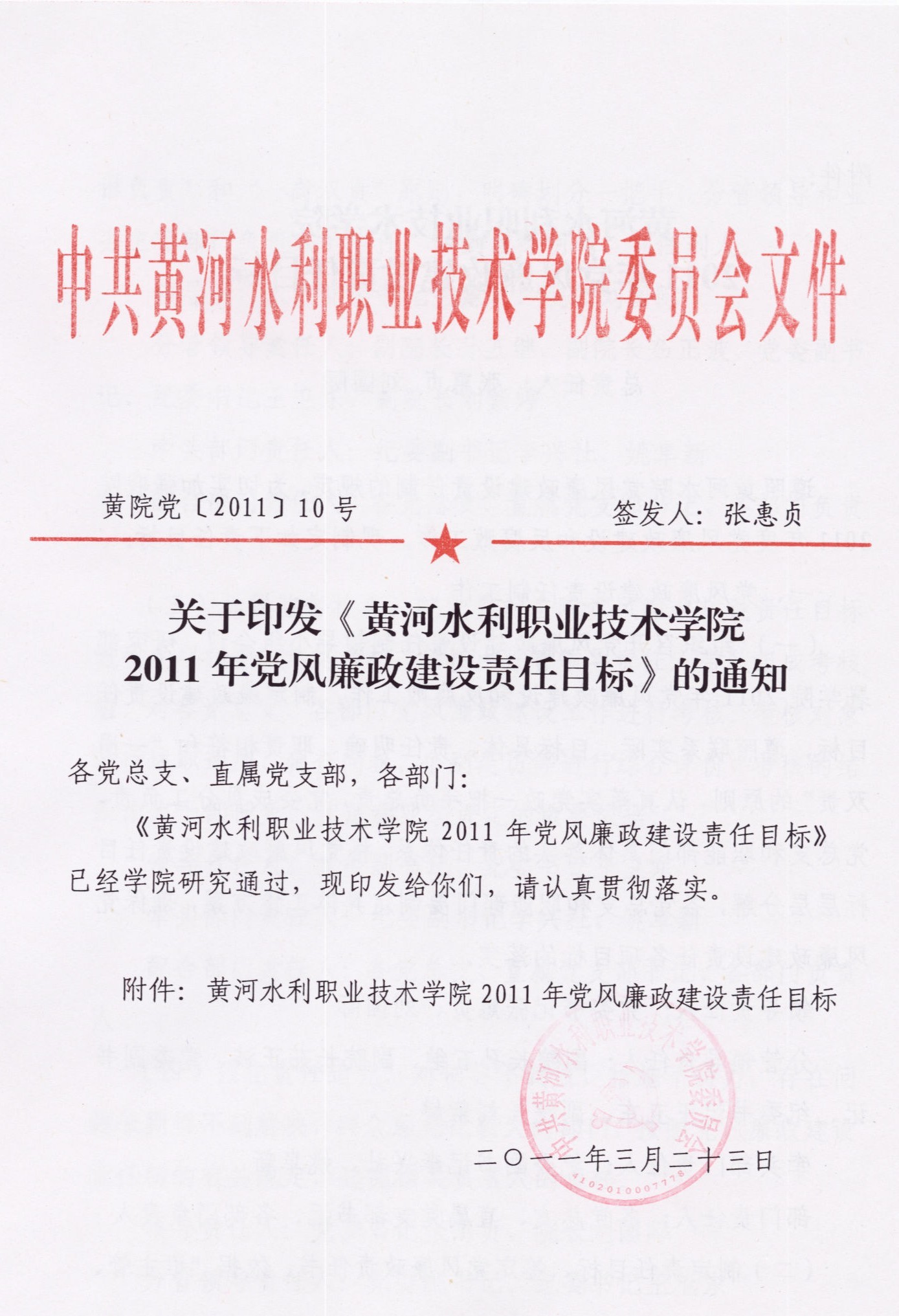 遵照黄河水院党风廉政建设责任制的规定,为切实加强我院2011年度党风廉政建设和反腐败工作,现制定如下责任目标: