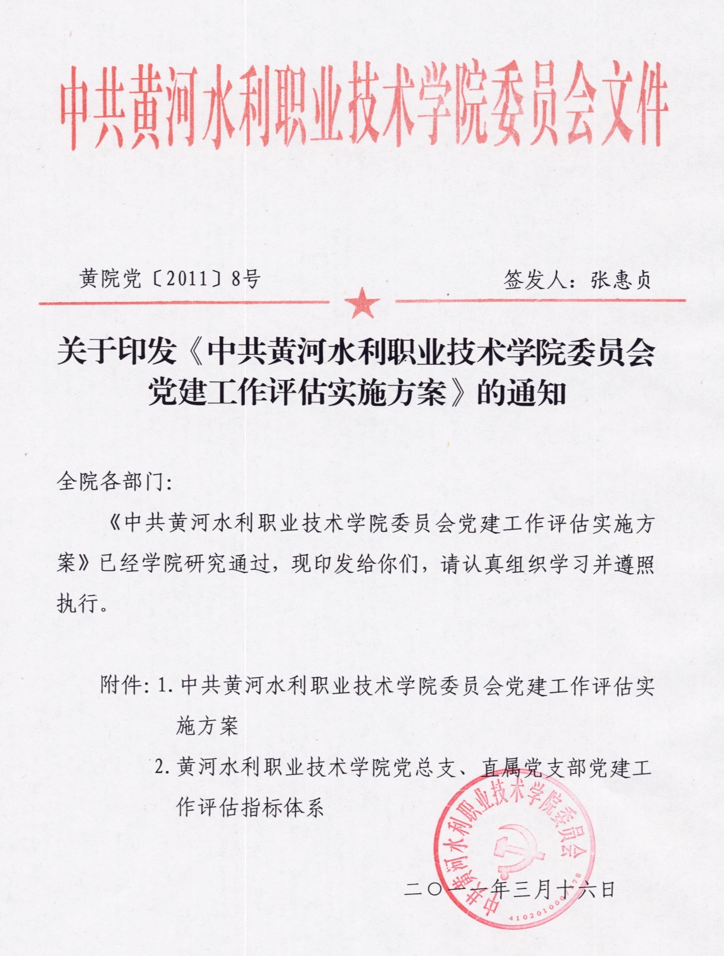 (1)学院召开由党总支书记、支部书记以及相关部门负责人参加的迎评工作动员会,印发《中共黄河水利职业技术学院委员会关于在全院开展党建工作评估实施方案》。