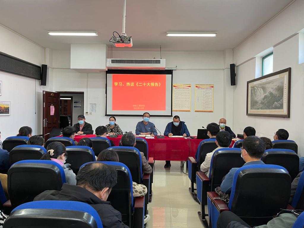 10月16日至22日,党的二十大在京召开。习近平总书记在开幕会上作的二十大报告,科学谋划了未来5年乃至更长时期党和国家事业发展的目标任务和大政方针,报告内涵丰富,气势恢弘、催人奋进,通篇闪耀着马克思主义真理的光芒,是我们党开启新征程、续写新篇章的政治宣言和行动纲领,为我们奋进新时代、开启新征程、续写新篇章指明了前进方向、提供了根本遵循。学习好、宣传好、贯彻好党的二十大精神,是当前和今后一个时期的首要政治任务。为把习近平总书记在党的二十大开幕会上的报告精神进一步领会透彻,不折不扣地落实到本部门、本单位的工作中去,10月18日,我校各部门、各单位积极组织多种学习形式,迅速掀起学习宣传贯彻热潮,把学习宣传报告精神转化成为推动发展的强大精神力量,为学校高质量发展注入新的活力、增添新的动力。(供图:各相关部门)
