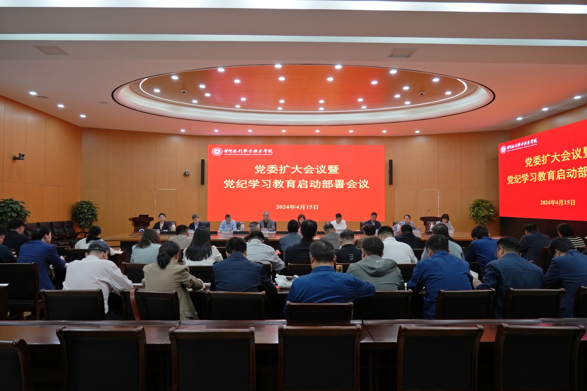 4月15日,我校在行政楼第五会议室召开党委扩大会议,传达学习习近平总书记关于党纪学习教育的重要讲话和重要指示批示精神,贯彻落实中央、省委关于开展党纪学习教育的决策部署以及省委教育工委的要求,审议通过《中共黄河水利职业技术学院委员会关于在全校党员中开展党纪学习教育的实施方案》,启动部署学校党纪学习教育工作。全体校领导、中层正职干部参加会议。党委书记周保平主持会议并讲话,党委副书记、校长胡昊就学校的党纪学习教育实施方案进行了说明。