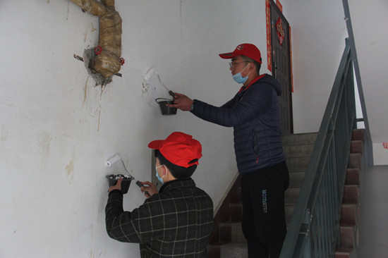 水利工程学院青年志愿者在社区进行墙面修整