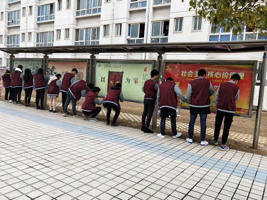 环境与化学工程系志愿者清理校内宣传栏