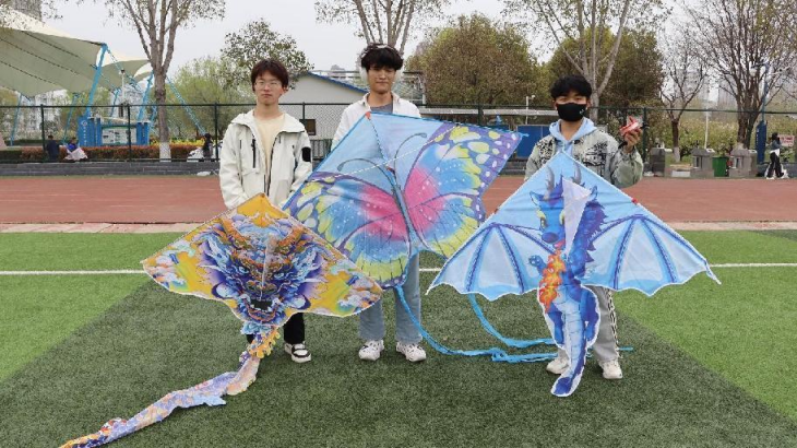 筝筝纸鸢起,朝朝百花艳,同学们用彩笔和颜料尽情发挥想象力和创造力,画出形态各异、色彩斑斓、具有个人特色的风筝,手中的画笔在风筝上描绘出一个个生动的图案:有的是校园美景,有的是翱翔的雄鹰,还有的是充满童真的卡通形象。随后同学们为风筝插上骨架、接上转轴,将构思精巧、色彩绚烂的风筝带到田径场,放飞自己的风筝,同学们牵着线、迎着风、奔跑着……一只只风筝带着同学们的欢声笑语飞翔在天空中。