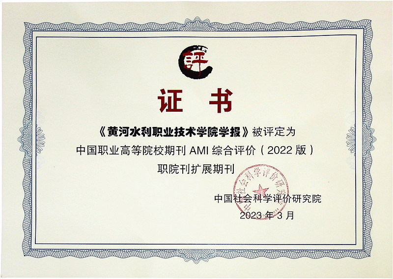 3月31日,由中国社会科学评价研究院主办的“中国职业高等院校期刊AMI综合评价报告(2022版)发布会”在北京成功举行。《黄河水利职业技术学院学报》作为侧重行业应用类期刊,获评AMI(职院刊)扩展期刊。