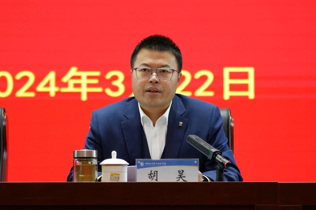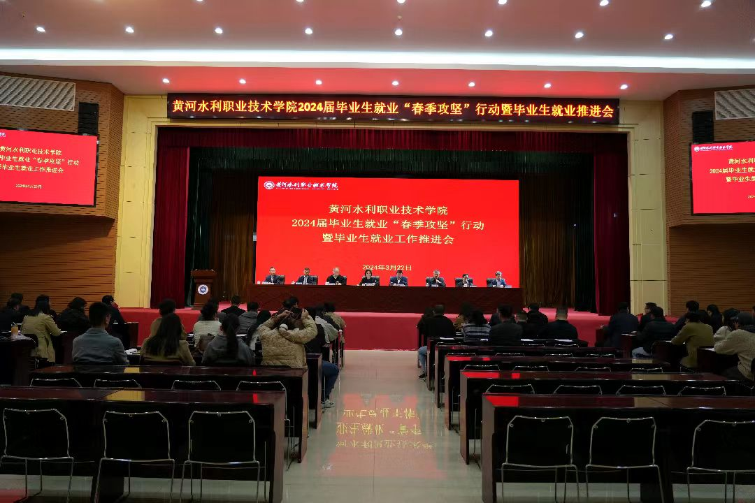 3月22日上午,黄河水院2024届毕业生就业工作推进会在学生活动中心一楼报告厅举行,校党委书记周保平,党委副书记、校长胡昊,党委副书记、工会主席杨士恒,副校长刘玉宾、菅浩然、刘守义、朱焕立,纪委书记刘许亮出席会议,招生就业服务中心、学生工作部、创新创业学院部门负责人,各二级学院党总支书记、院长、校企合作办公室主任、毕业班全体辅导员参加会议。会议由胡昊主持。