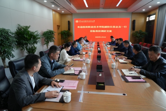 4月9日,洛阳职业技术学院副校长张志友一行9人到我校调研交流。我校党委副书记、校长胡昊,党委副书记、工会主席杨士恒,副校长朱焕立出席交流活动。党政办公室、教务处、发展规划处、机械工程学院、土木与交通工程学院等部门负责人参加座谈交流。