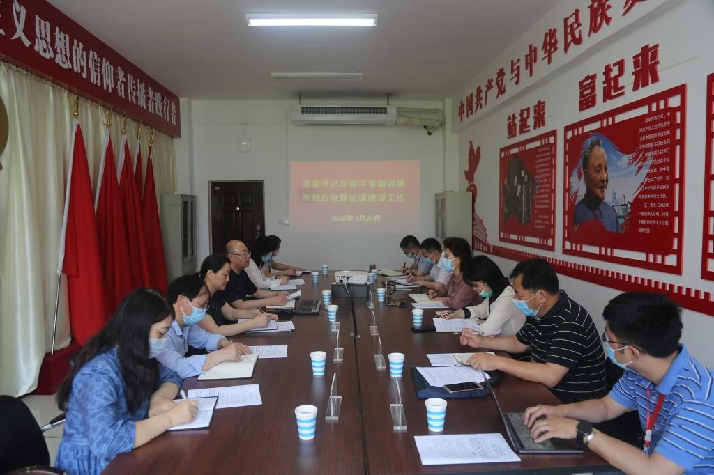 5月25日下午,校党委书记周保平深入马克思主义学院对我校思想政治理论课建设、制度建设、基层党建等工作进行了调研。党政办公室、党委组织部、党委宣传部、教务处、信息化建设管理办公室等部门负责人随同参加调研,马克思主义学院科级以上干部参加了调研座谈。