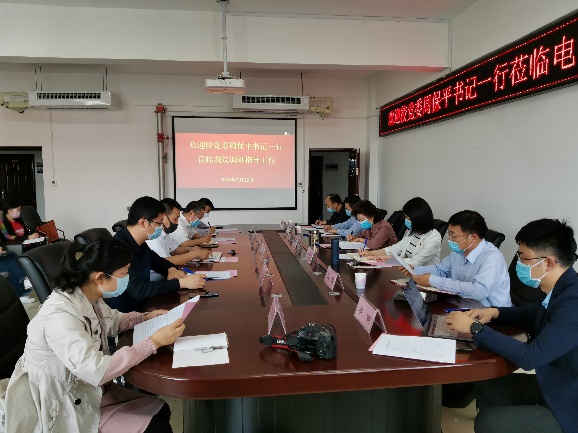 电气工程学院党总支书记胡健介绍了我院的基本情况和发展思路,汇报了学院党建工作、师资队伍、产教融合等方面的总体情况和取得成绩。对电气工程学院疫情防控及返校复学准备情况进行了汇报