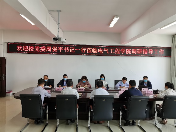 周保平听取汇报后,充分肯定了电气工程学院工作所取得的成绩,并对学院下一步工作提出要求:一是以双高校建设为契机,加大专业建设力度;二是以目标为导向,提升学院的整体实力;三是以改革为动力,加快学院的发展速度;四是以提高服务质量为基础,加强党建工作;五是发挥电气工程学院的专业优势,为学校做出更大的贡献。