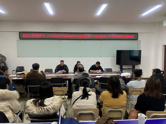 12月1日下午,信息工程学院组织全体教工在SY5508开展制度培训会。重点学习《中共黄河水利职业技术学院委员会网络意识形态工作责任制实施细则》和《黄河水利职业技术学院委员会网络意识形态工作责任制实施细则》。会议由党总支书记罗朝峰主持。