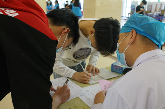 为保证疫苗接种工作顺利开展,我校制定了详尽的工作方案。按照开封卫健委以及学校党委疫情防控的工作要求,坚持“安全、稳妥、有序、应接尽接、完全自愿”的原则按步骤、分阶段、分批次实施。接种现场师生排队井然有序,医务人员保障到位,120急救车现场值班值守,志愿者认真维护秩序。三天共有9868名师生完成疫苗接种,筑牢了校园防疫屏障。(摄影:党委宣传部 王红)