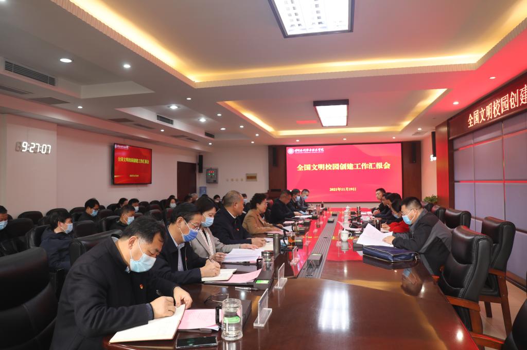 党委副书记、工会主席杨士恒从突出立德树人,筑牢思想坚实根基;强化班子建设,夯实发展组织保证;强化师德师风建设,提升教书育人能力;强化以文化人,浓厚文化育人氛围;加强环境建设,营造优美育人环境;严格阵地管理,筑牢防线抵御渗透等6个方面详细汇报了我校2021年度全国文明校园创建工作开展情况。