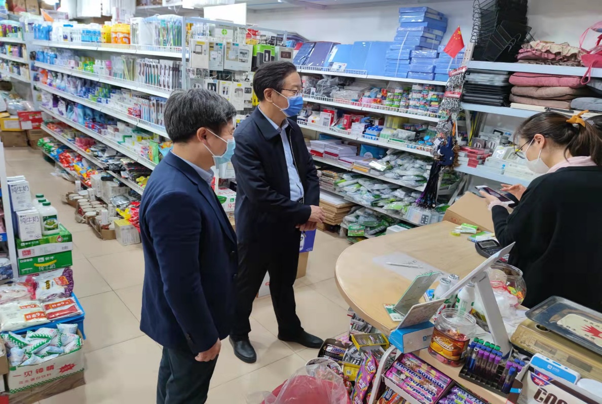 刘守义到学校各商业网点仔细查看了经营人员健康码、行程码和核酸监测报告,并对商店内商品的价格、生产日期、储存保鲜等进行了认真细致的检查。