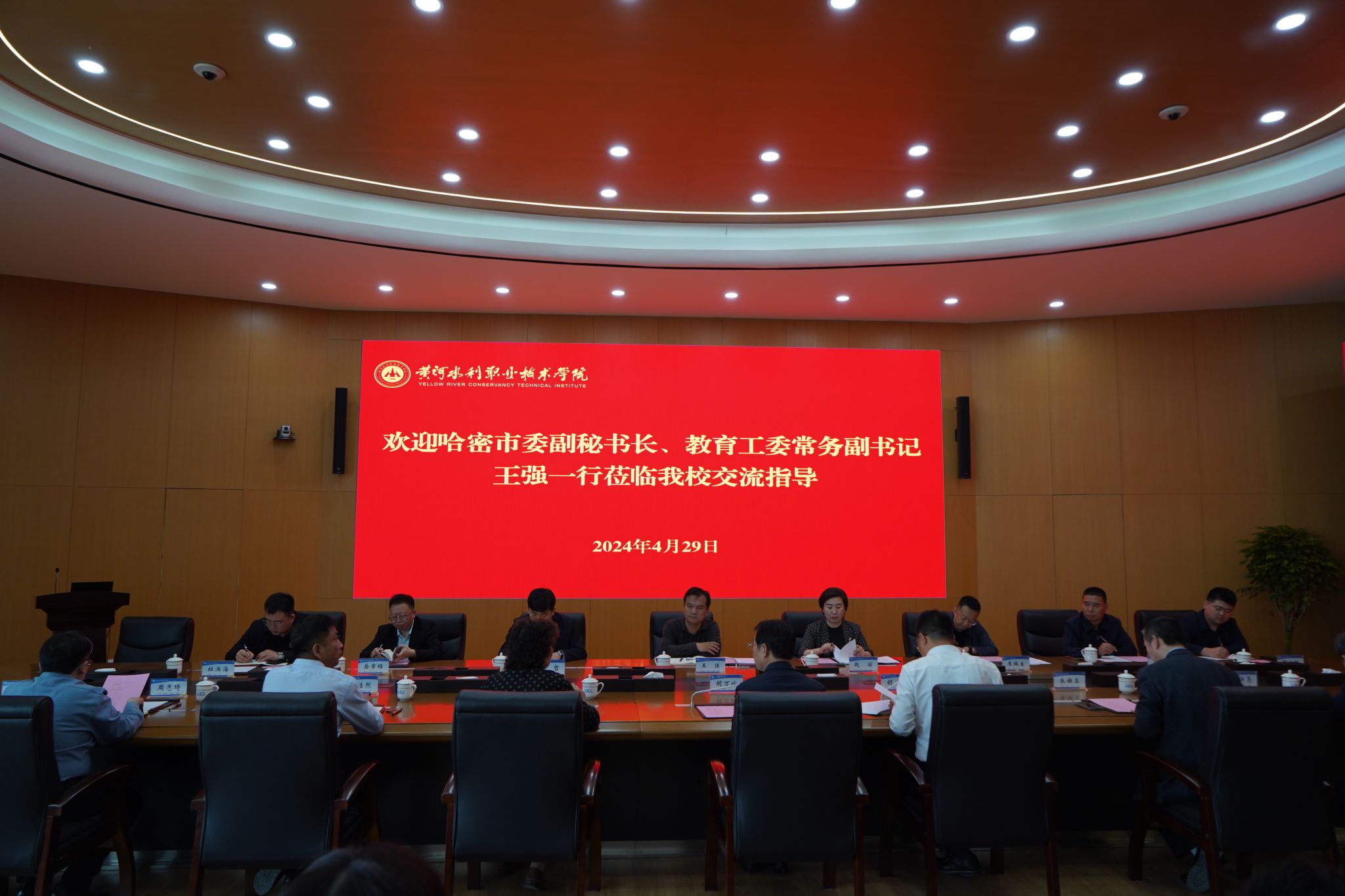 王强对河南省教育厅、黄河水院一直以来教育援疆、人才援疆取得的成就表示高度赞赏,对一直以来援建和关心帮助表示感谢。他介绍了哈密市教育发展的基本情况、资源优势和哈密职业技术学院的发展历程以及目前的办学情况,重点介绍了哈密市正在积极组建申报一所职业本科院校的发展目标和所做的工作。他强调,衷心希望黄河水院进一步弘扬河南对口援疆精神,充分发挥在职业本科申办过程中积累的有益经验,在哈密职业本科申报给予更多更有力的帮助和指导,为哈密市职业教育建设提供更强大支持。