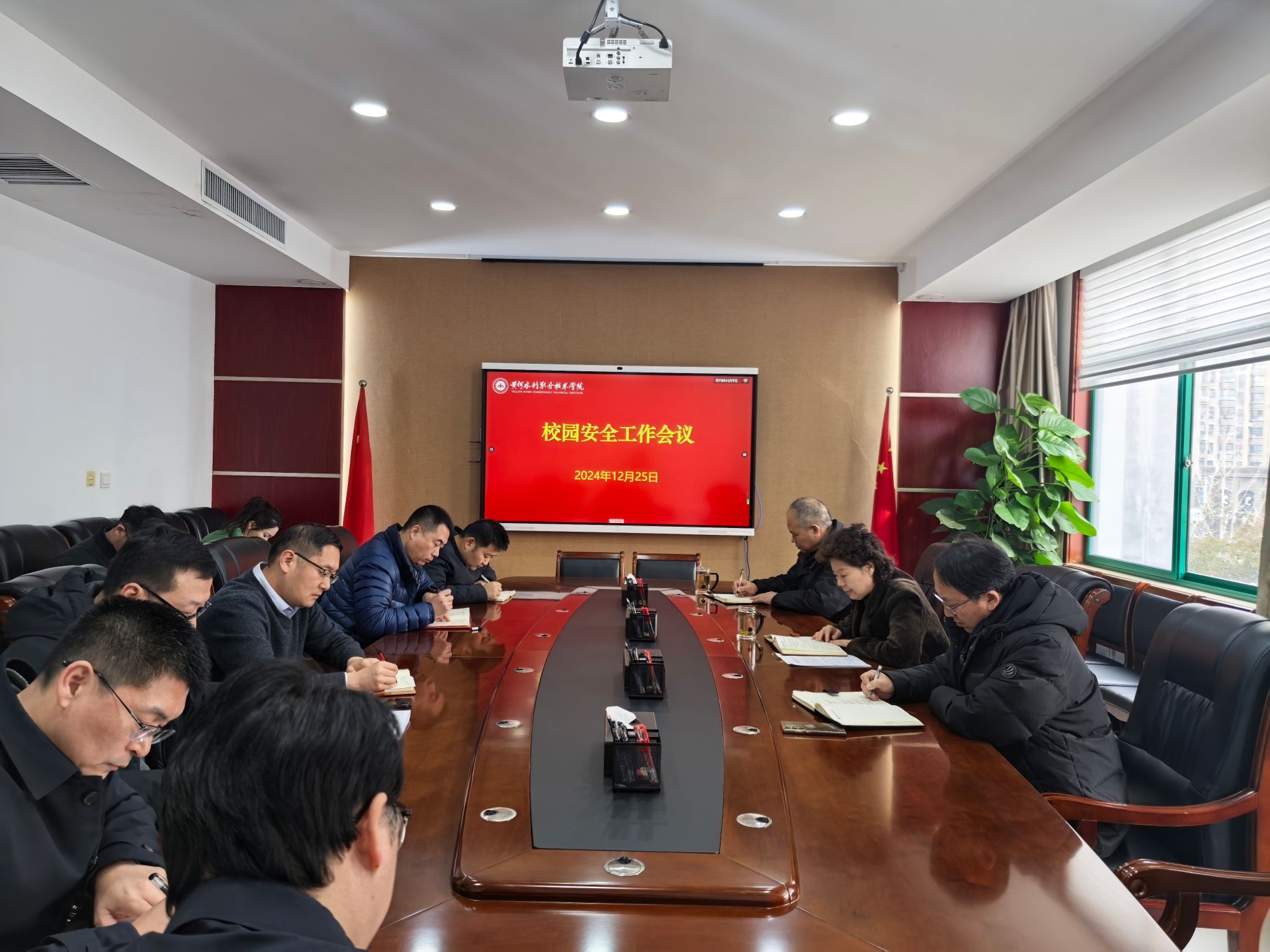 为进一步强化校园安全管理工作,确保期末校园安全形势持续稳定向好,12月25日上午,我校在行政楼第二会议室召开相关部门安全工作会。党委书记周保平,党委副书记、工会主席杨士恒,副校长周志琦出席会议,会议由周保平主持。党政办公室、党委宣传部、学生工作部、人事处、保卫处、团委、后勤管理服务中心等相关部门负责人参加会议。