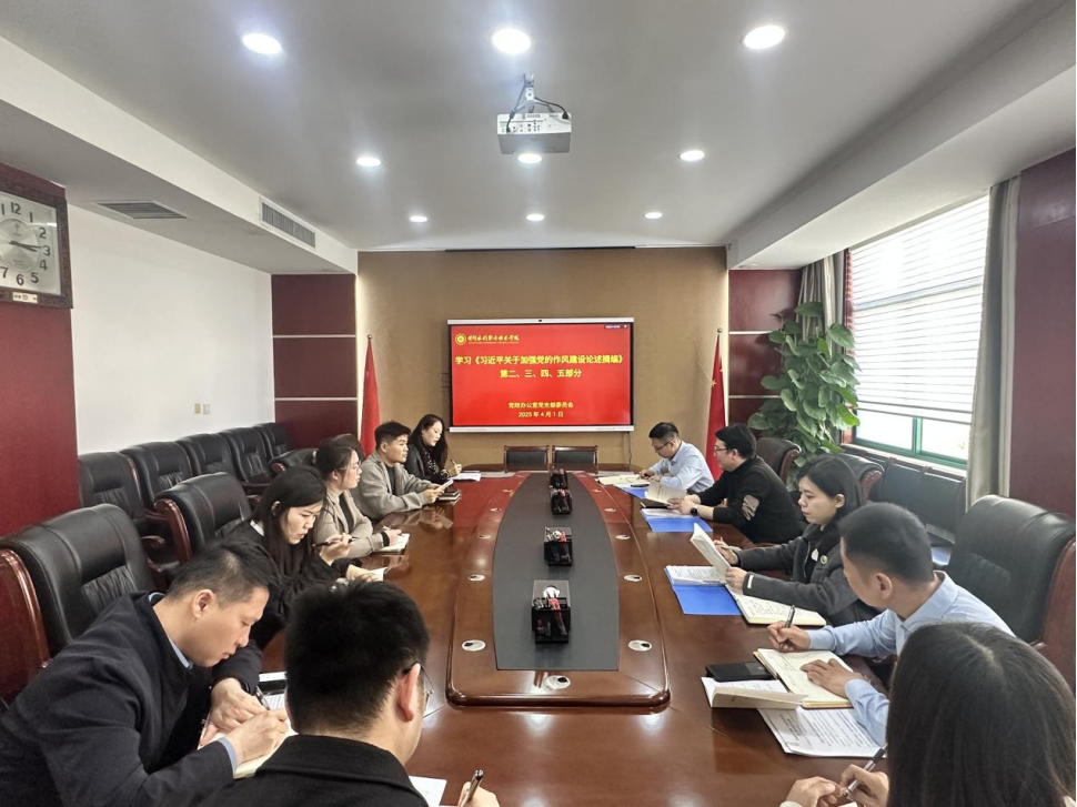 4月1日下午,党政办公室支部召开专题学习会,专题学习《习近平关于加强党的作风建设论述摘编》。党政办公室支部书记李聪主持会议,部门全体党员参加会议。