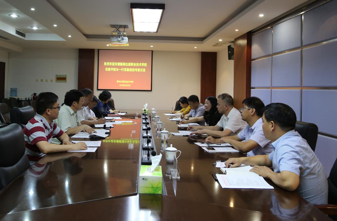 2019年6月20日上午,安徽新闻出版职业技术学院院长岳毅平一行6人到我校考察交流。我校副校长杨士恒及财务处、质量办、人事处、党政办等部门领导热情接待了来访客人。双方在行政楼第二会议室进行了座谈交流。