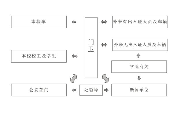 (2)本校教工及学生门卫查验有效证件(工作证或学生证)。
