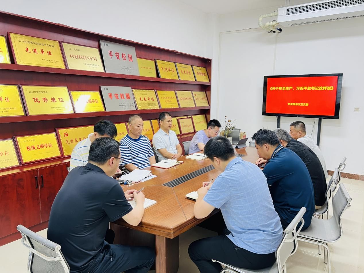 根据宣传部下发《关于本周二增加政治理论学习任务的通知》要求,保卫部(保卫处、武装部)于6月19日9:00在实训楼5316会议室组织全体人员开展政治理论学习,深入学习贯彻习近平总书记关于安全生产重要论述,扎实开展“安全生产月”活动。