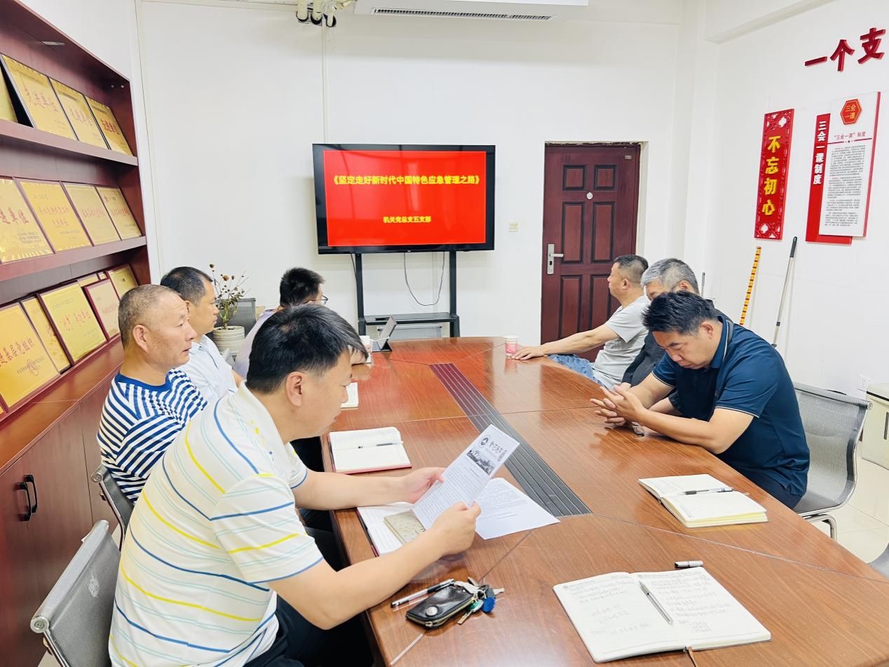 宋杰带领大家学习《关于安全生产,习近平总书记这样说》、《习近平在中央政治局第十九次集体学习时强调 充分发挥我国应急管理体系特色和优势 积极推进我国应急管理体系和能力现代化》、《坚定走好新时代中国特色应急管理之路》相关内容。