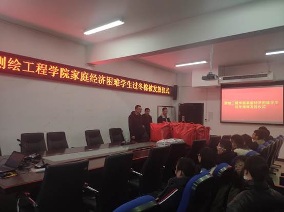 测绘工程学院举行家庭经济困难学生过冬棉被发放仪式