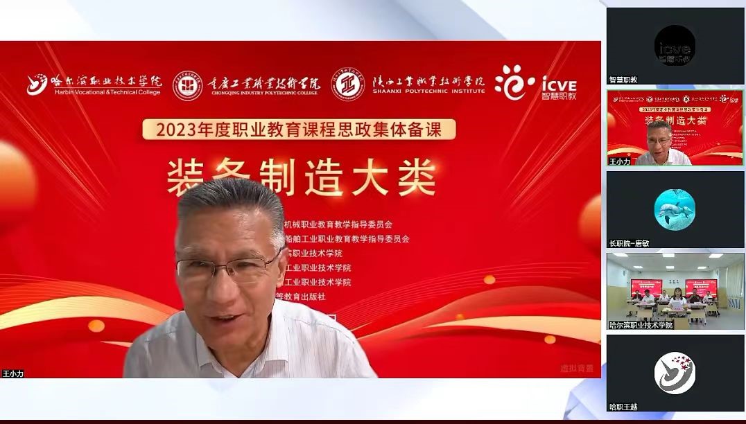 本次集体备课会由全国机械职业教育教学指导委员会和全国船舶工业职业教育教学指导委员会主办,会议邀请了教育行政管理部门领导,全国机械职业教育教学指导委员会、全国船舶工业职业教育教学指导委员会特邀领导及专家,职业院校装备制造大类专家进行课程思政政策解读、领学和点评,同时还有来自黑龙江、陕西、吉林、河南、河北等5个省份的9门课程思政示范课程的教学名师进行课程展示。
