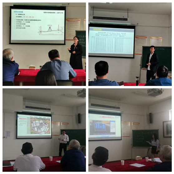 此次试讲有牛晓航、张继坤、杜文志、赵欣4位青年教师,4位青年教师结合各自的专业特点,分别以“四等水准测量”“像控点的布设”和“全站仪三维导线的布设和实施”等知识作为授课内容进行了教学试讲。