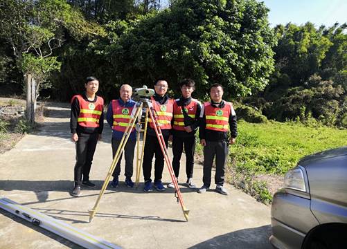图为测量人员在进行控制桩点的核查