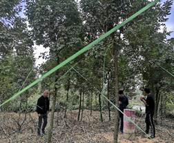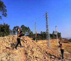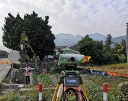图为测量员在测量上山路段