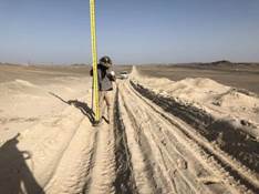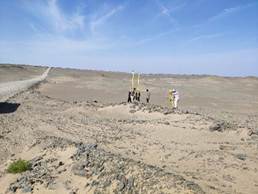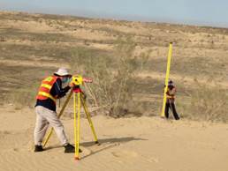 我们在沙漠无人区里住的是车厢房,在这里手机是没有信号的,我们一共有二十二天没有与外界联系了。今天早上我们五点四十就起床吃早饭,然后进入沙漠深处测量,下面是我们测量时的情景: