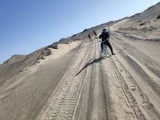 到了下午六点左右,我们就会测到我们的坐标点上,虽然一天的辛苦工作终于结束了,但我们所要承受的辛劳还远远没有结束,因为我们还要坐两个半小时的车才能回到住宿的地方。这段路程是我一天中最难熬的,因为我是一个特别容易晕车的人。有时,路上还会有惊喜出现,比如遇到一些动物,以及,车子陷入沙子里面。