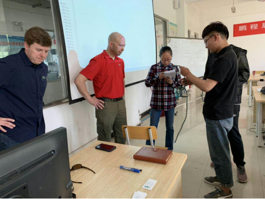 在本次为期两周的教学合作中,来自西北密歇根学院的专业教师Hans和John,面向工程测量(W)1607班开展教学工作,测绘工程学院派出了较往年更多的专业教师参与辅助教学工作,有朱恩利、刘云彤、陈慧、徐琳四位教师;来自国际教育学院的教师蔡蓓和段丽娜承担基础英语翻译工作;另外还有更多的仪器设备和更大的实训场地支持。