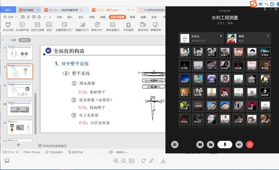这学期我主讲三门课,分别是《水利工程测量》《数字测图》和《地籍测量》。大疫背景下的“停课不停学”,网课该怎么上,怎么上才能保证教学效果是我一直探索的内容。现将网课至今的授课过程总结如下: