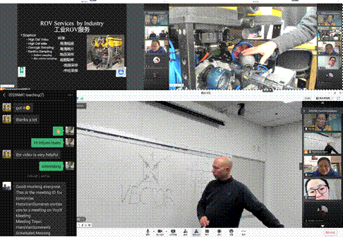 此次授课时间为2020年12月8日—2021年2月5日,每周周二—周五上午8:00-10:00,共64学时。授课内容分为《水下声学与声呐》和《水下机器人系统与操作》两部分。授课教师为HANS和JOHN,参与师生来自两个学院:国际教育学院工程测量(W)1801/02班33名学生及2位双语教师蔡蓓和段丽娜;测绘工程学院工程测量(W)1707班38名学生及2位双语教师朱恩利和陈慧。