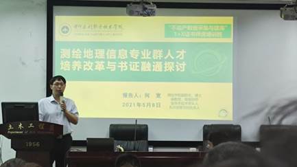 5月7日至11日,由福建金创利信息科技发展股份有限公司主办,四川建筑职业技术学院承办的2021年1+X“不动产数据采集与建库”职业技能等级证书全国首场师资培训班成功举办,我校测绘工程学院副院长何宽副教授受邀做了题为《测绘地理信息专业群人才培养改革与书证融通探讨》的专题报告。