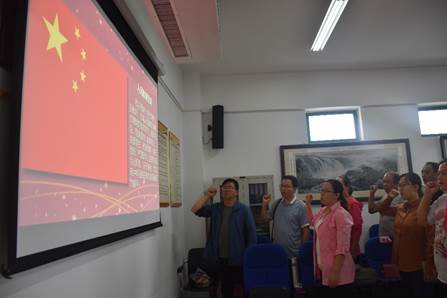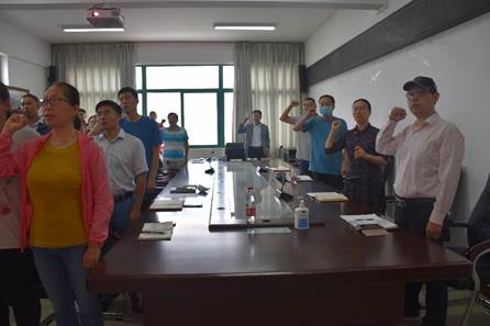 学习最后,大家重温人民教师誓词。誓词宣誓时,全体教师举起右手,列队肃立,陈琳院长领誓。“我志愿做一名光荣的人民教师,忠诚人民教育事业,贯彻党的教育方针……为实现中华民族的伟大复兴而努力奋斗!”