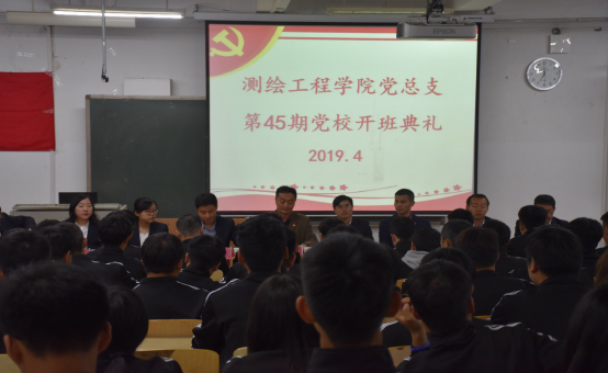 2019年4月28日晚,测绘工程学院在JX2202举行了第45期党校开班典礼。参加本次开班典礼的有测绘工程学院党总支书记纪勇、各党支部书记、学生支部委员以及第45期入党积极分子和发展对象。开班典礼有陈普智老师主持。