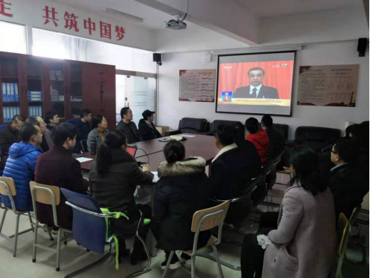 2019年3月5日上午9时,十三届全国人大二次会议在人民大会堂正式开幕。我院组织全体教师和学生干部在五号实训楼四楼党员活动中心和会议室进行观看,认真听取国务院总理李克强关于政府的工作报告。