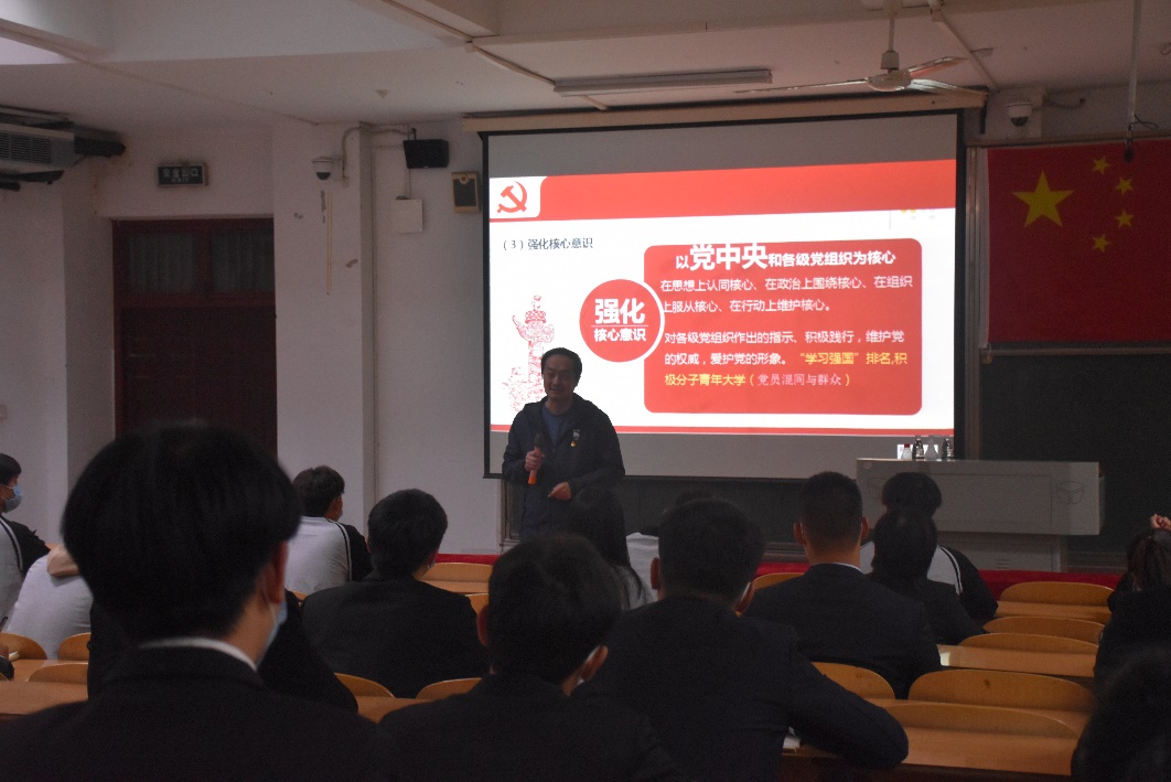 1113日,测绘工程学院党总支书记纪勇在JX6202给全体48期党校学员做题为《坚定理想信念,做合格的共产党员》的专题讲座。