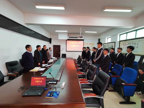 会议开始前,全体党员和发展对象起立,奏唱国歌,接着主持人宣读了本次大会议程。