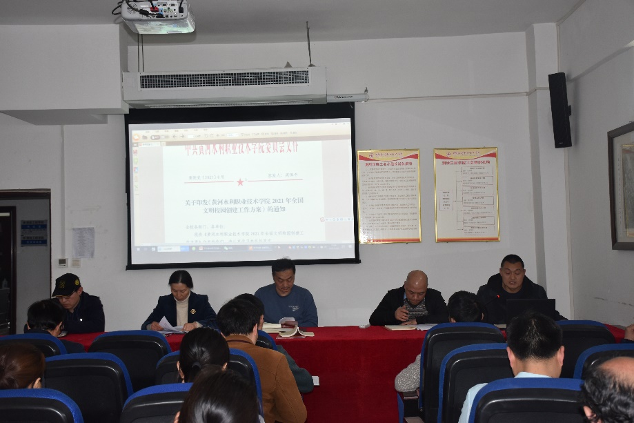 图2 彭书记带领全体教师学习《黄河水利职业技术学院2021年全国文明校园建设工作方案》