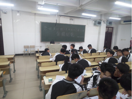 2018年5月2日, 测绘工程学院组织第43期党课学员在JX2302举办党课分组讨论。