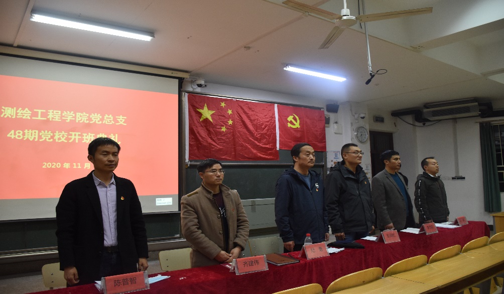 测绘工程学院党总支48期党校开班典礼于1113日晚在JX6202隆重举行。测绘工程学院党总支书记纪勇、副书记彭战松、学生测绘工程一支部书记李忠旺、二支部书记陈普智以及党总支组织员、48期党校班主任王淼出席了开班典礼。