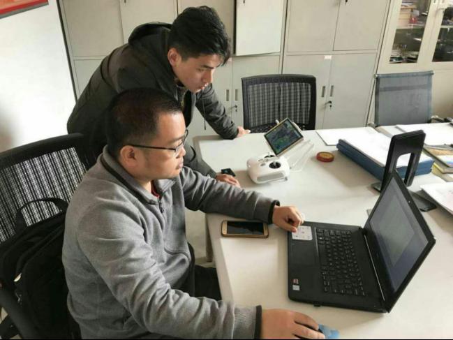 图2 师生争分夺秒进行无人机内业成图工作
