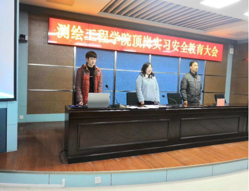 张辉老师发言希望大家牢牢树立“安全第一”的思想,强化安全意识,明确安全责任。测绘工程学院党委副书记刘广社也给同学们讲解了往年的实习过程中出现的一些事例,从法律法规到生活技巧,通过生动的案例,从工作安全、人身财产安全、防骗防传销、交通安全、饮食安全、心理健康以及其他方面都一一作了教育和警示。最后,徐琳老师就具体手续和宿舍、个人安全方面进行了细致的安排。