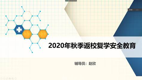 为进一步普及疫情防控知识,提高学生安全意识,筑牢安全防线和疫情防控线,为返校复学做好充分准备,8月29日,赵欣老师通过腾讯会议为学生开展“2020年秋季返校安全教育”主题班会。