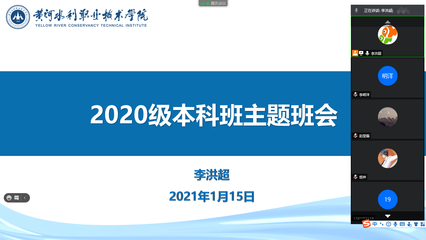 115日下午,测绘工程2001本科班召开首场寒假线上主题班会,班会由班主任李洪超主持,全班30名同学参加了线上会议。