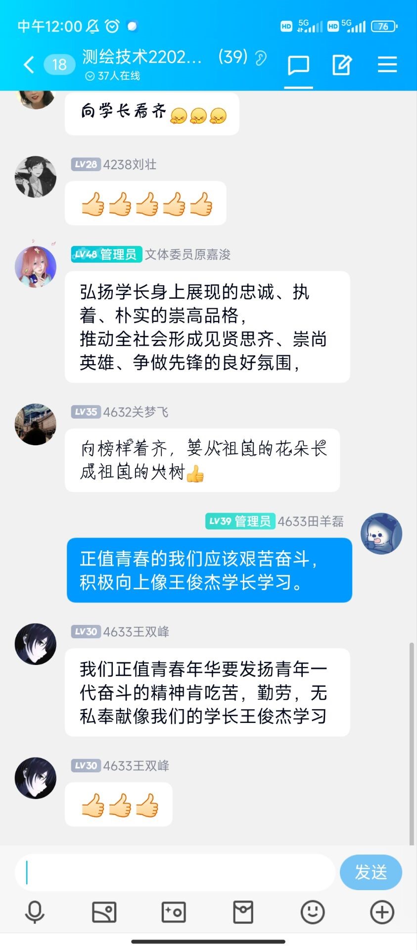 图2 班级群内同学们热烈讨论励志学长的故事